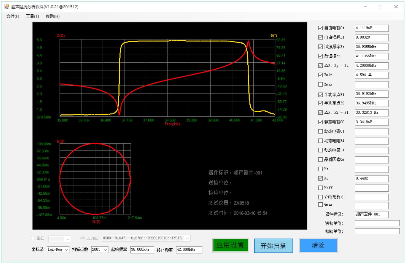 ZX70A/ZX80A系列超聲阻抗分析儀在儀器上就實(shí)現(xiàn)掃描圖形,還可以把儀器上屏幕顯示圖形和測(cè)試數(shù)據(jù)直接拷貝到U盤(pán)。同時(shí)儀器自帶電腦軟件界面,標(biāo)配版無(wú)需另行購(gòu)買。