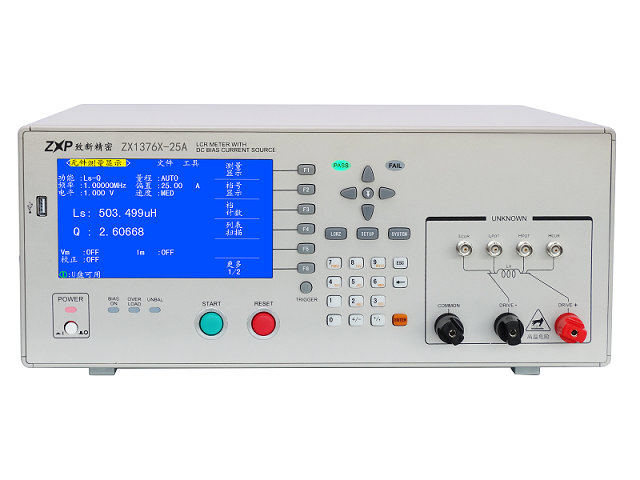 ZX1376是內(nèi)建高頻LCR數(shù)字電橋和0~25A直流偏置電流源的電橋偏流一體機(jī),低達(dá)0.25mA的電流分辨率,25A時(shí)輸出電壓高達(dá)11V,可分析電感器中鐵心的特性,作為電感器質(zhì)量檢測(cè)或產(chǎn)品特性的分析。內(nèi)置的偏流源噪聲更小,控制更靈活;內(nèi)建比較器,方便組建到電感器檢測(cè)的自動(dòng)化生產(chǎn)線。ZX1376型號(hào)僅含0~25A直流偏置電流源,可通過(guò)標(biāo)準(zhǔn)RS232C接口方便的與外部LCR表連接。