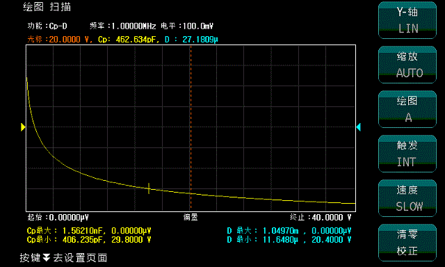 主要用于測(cè)試半導(dǎo)體器件PN結(jié)的勢(shì)壘電容在不同偏壓(V)下的電容量(C)。ZX38A-CV半導(dǎo)體C-V特性測(cè)試儀除了可以連接電腦上位機(jī)軟件掃描分析功能外,還提供在儀器大屏液晶顯示器上直接顯示C-V掃描曲線分析功能。這樣客戶不再需要為每臺(tái)儀器配置一臺(tái)電腦。這種方式既保證了測(cè)試效率,又降低了測(cè)試成本、還方便客戶在生產(chǎn)線上使用。還可以把儀器屏幕上顯示圖形和測(cè)試數(shù)據(jù)直接拷貝到U盤(pán)。